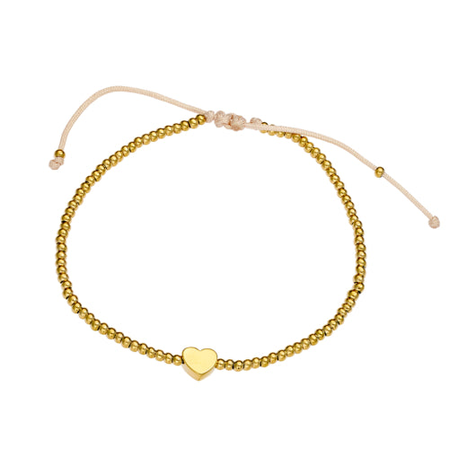 A delicate touch of golden sunshine, this stackable bracelet features 2 mm beads and a petite heart charm for a hint of tropical romance. Crafted from stainless steel hard-coated with 18 K gold PVD plating, it’s perfect worn solo for subtle charm or layered with other pieces to create your own sun-kissed stack.